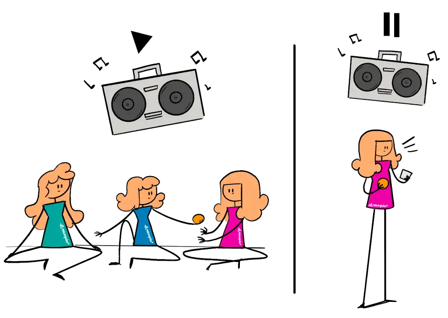 Entrega 4 papeles en blanco a cada participante. Pide que escriban tres preguntas profundas y una penitencia divertida. Junta todas las hojas en una bolsa, pon música y pasa un objeto mientras suena. Cuando la música pare, quien tenga el objeto sacará una hoja y la responderá o cumplirá la penitencia.