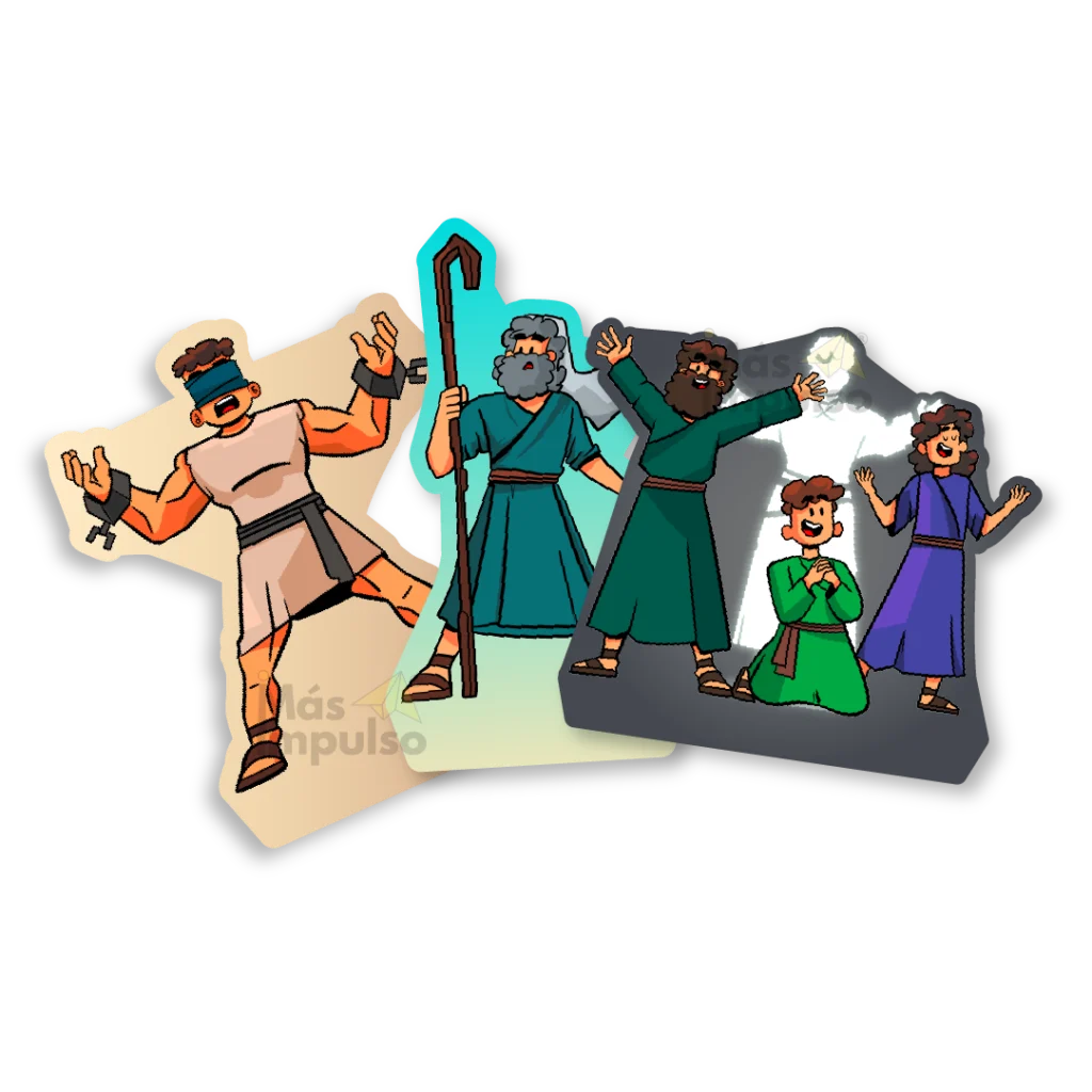 3 historias bíblicas en cajitas sorpresa con figuras recortables que cobran vida cuando las abres. Estas historias son: