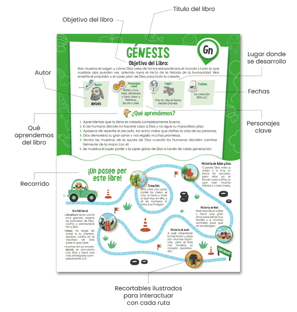 Con este recurso, los niños podrán explorar y conocer cada libro de la biblia de una forma más creativa, dinámica y entretenida.
